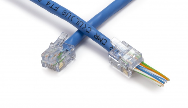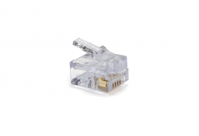 The EZ-RJ12/11 Connector simplifies twisted pair terminations by allowing the wires to be inserted through the connector and out the front. This allows the technician to easily verify the proper wiring order prior to termination. Use the EZ-RJPRO HD™ Crimp Tool (P/N 100054) or EXO Crimp Frame® with EZ-12/11 Die (100061 & 100073C) for single cycle crimping and trimming of the excess wire. FCC compliant and UL rated. Made in the USA.