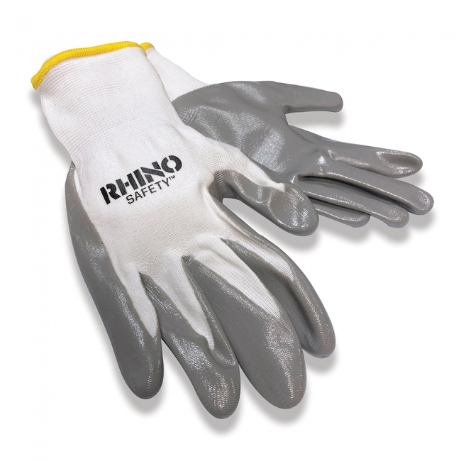 White nylon shell with a grey nitrile coated palm for excellent grip and dexterity.
